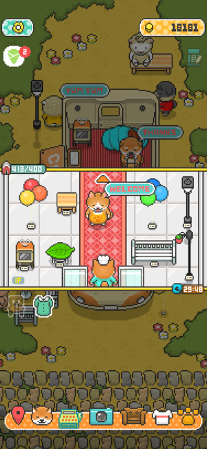 你要操纵一只小狗狗,一边卖可丽饼,一边吃饭睡觉洗澡澡。