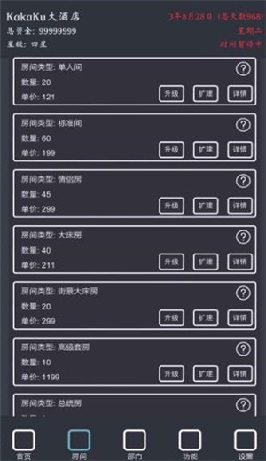 富的工具可以不断升级您的酒店,酒店等级越高,您可以获得的利润就越多。