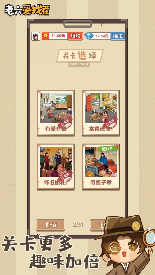 老六爱找茬作为一款休闲有趣的找茬闯关游戏
