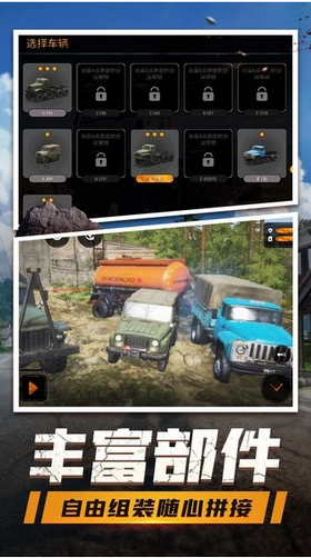 3.游戏者可以自由挑选不同的车型,面对不同的地形可以挑选最合适的车型来进行挑战。