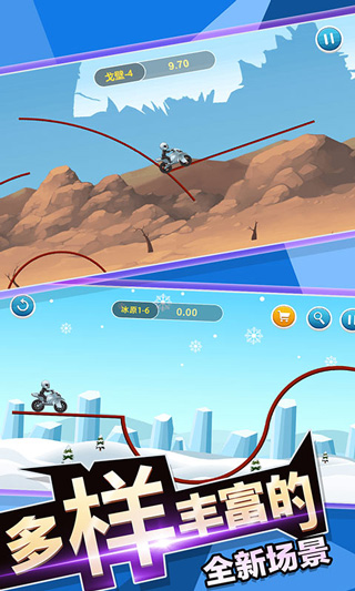 3、登山飙车游戏采用了先进的游戏引擎,打造了高品质的画面和逼真的音效。在游戏里玩家可以欣赏到细腻的画面表现和真实的引擎声音,增强了游戏的沉浸感和代入感。
