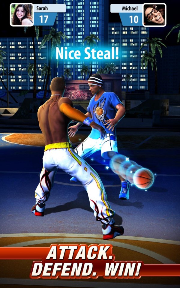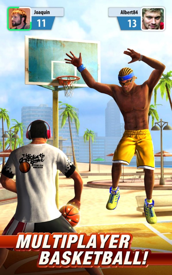 最逼真的3D画面,篮球游戏在手机上从未能做到的精美画面:完全定制的3D球员,以及各种球场供你玩!两种多人在线1对1完整的游戏模式。