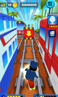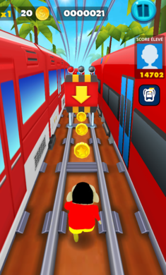 地铁跑酷蜡笔小新手游会考验每个游戏者的反应能力,还要实时刷新障碍,要小心。