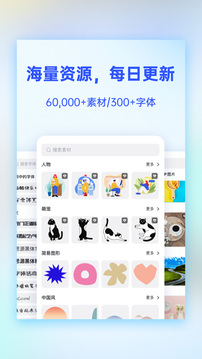 1、丰富的素材和模板:提供大量的实用素材和模板,以快速制作海报、Logo、简历、名片、封面、宣传单等各种设计项目。