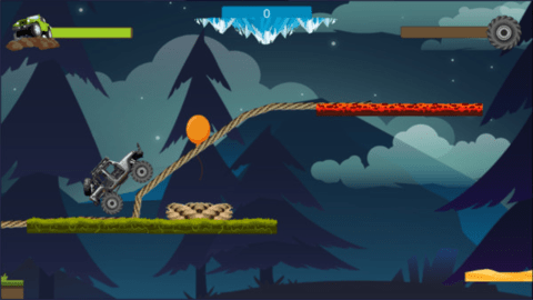 绳索车手作为一款赛车特技闯关游戏。游戏采