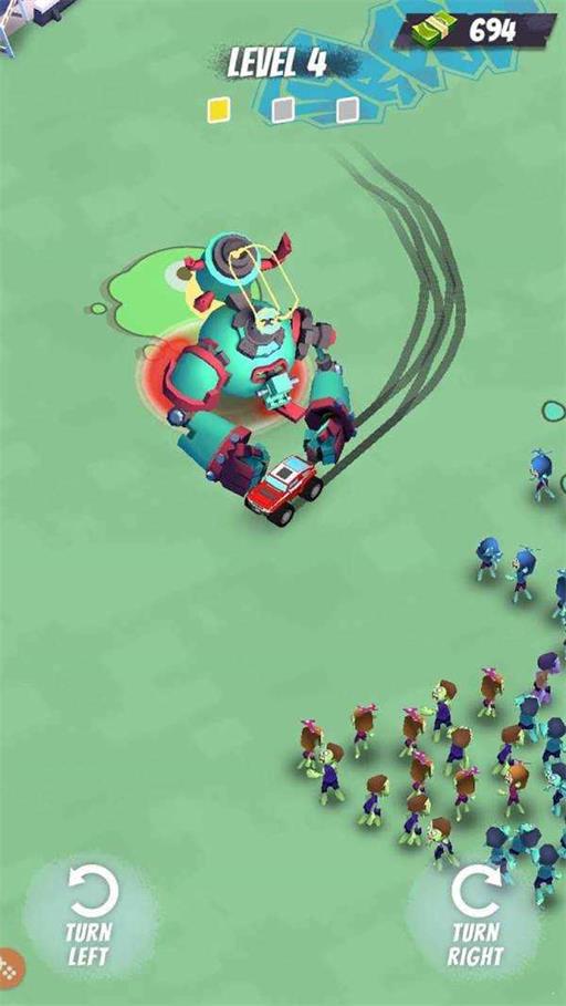 2、精彩碾压战斗:使用赛车的巨大力量,将僵尸撞飞,享受碾压僵尸的乐趣。