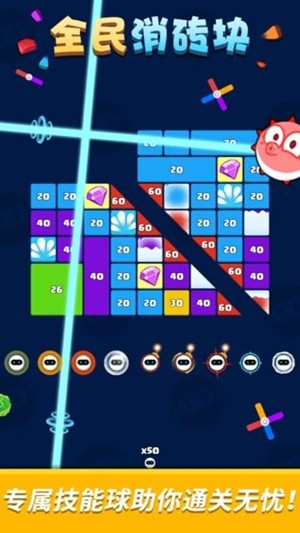 在全民消砖块游戏下载中,关卡道具已全面开