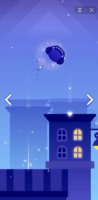 1、边走边听着音乐的节拍,一指游戏操作,让你的小球在各种建筑物上跳跃;