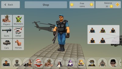这是一个多人手游,有3种模式:沙盒、死亡匹配和团队战斗。还有不同种类的武器,有趣的人物,汽车,坦克和直升机。超多的武器系统和人物系统会让你充分体验到这个手游的乐趣!