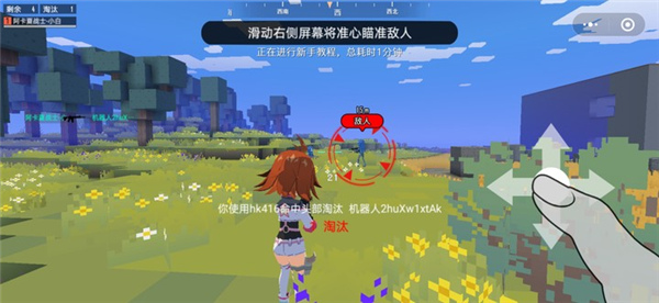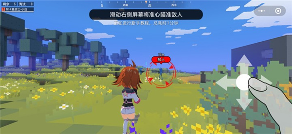 1.游戏中玩家可以首先体验新手教程,活动右下角的转盘,瞄准敌人展开战斗。