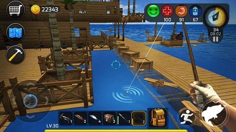 游戏者在进入手游后,处于一块2x2的小木筏上,除了手里的钩子再无他物。收集顺着海水漂浮而来的各种材料,制备必需品,以此确保在海上生存下去。