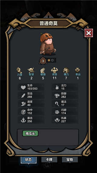 在游戏里面,在游戏里玩家将控制游戏角色学习各种技能,收集生存所需物品,并面临不同的场景和战斗的挑战,畅享肉鸽冒险的趣味。为了提高游戏的整体可玩性,游戏加入了属性面板,如攻击力、生命值、暴击、闪避、法术等。不同职业开局自带一个不同的天赋作为被动技能,并且卡牌、宝物等掉落池都是不一样的,充满趣味性。