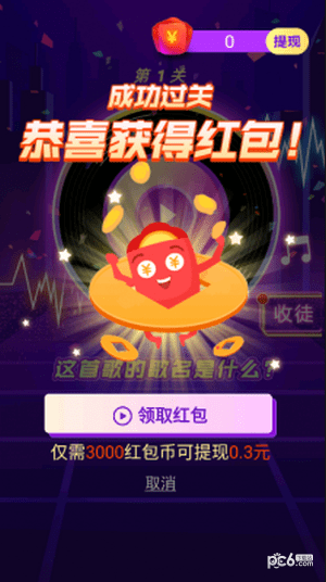 3.关卡的难度与你的歌曲库有关。听过的歌越多,就越容易。每过5关,就可以得到一个红包。