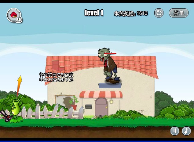 3.通过物理学上的力的运用,控制小鸟弹出的力度和角度,向进军的僵尸群进行发射;