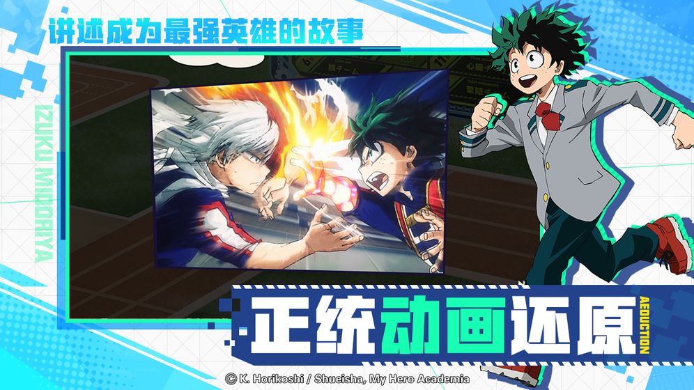 3、人物和场景设计与原设定100%一致,超多的互动玩法完美再现我的英雄学院世界。
