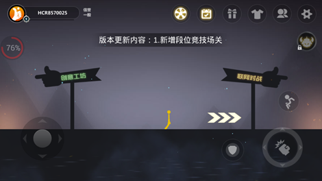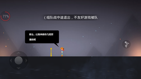 手游中游戏者操纵火柴人,使用简单的横摇操作操纵火柴人进行热血格斗。