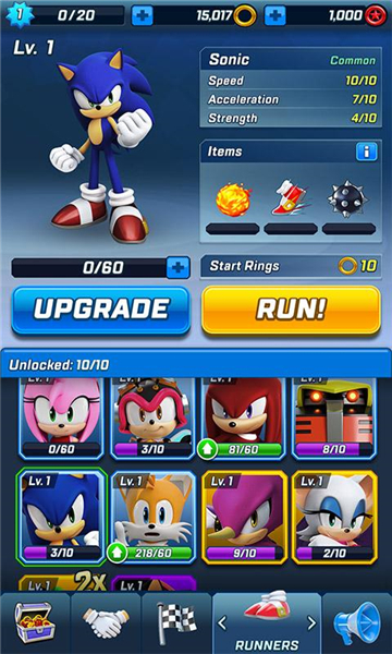 索尼克力量速度之战是索尼克系列的动作跑酷手游, 把现实和梦想很好的结合起来,感受不同维度最有特色的世界。小伙伴可以轻松自如的挑战,操作方式很简单,单手即可操控。手游开启了一种全新的玩法,放松了自己的心智,给游戏者最震撼的游戏体验。