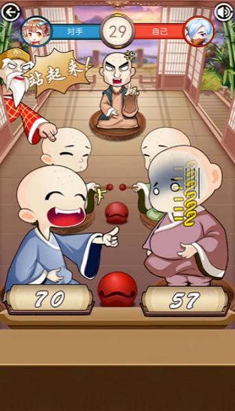 游戏者可以使用不同的方式来干扰其他游戏者敲木鱼的进程,干扰其他游戏者取得胜利吧。