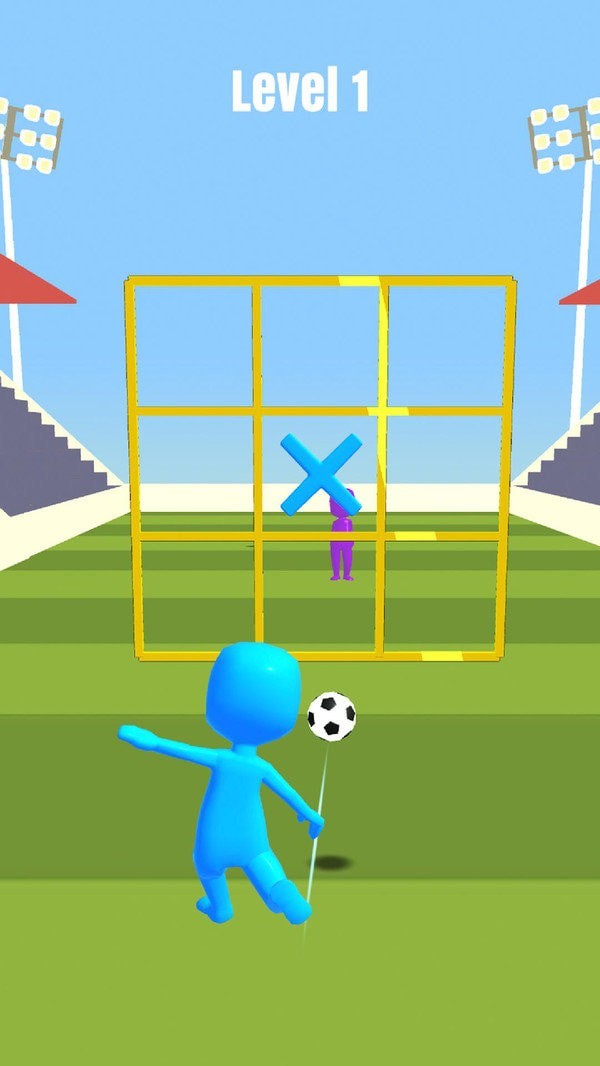 2、用户只需要控制小人,用一只脚将足球踢进九宫格之内。
