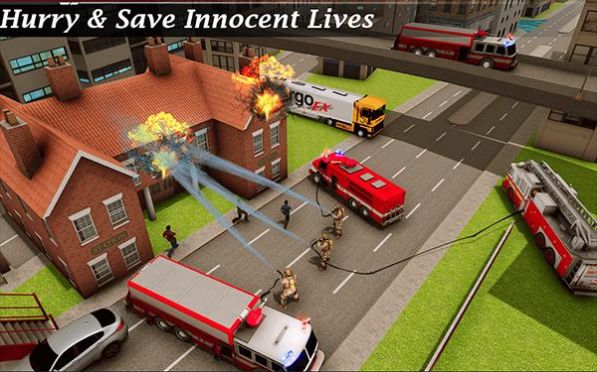 2、在游戏里面,您将驾驶高性能飞行消防卡车,这些卡车配备了高压水枪、灭火泡沫喷射器和救援设备,以对抗不同类型的火灾;