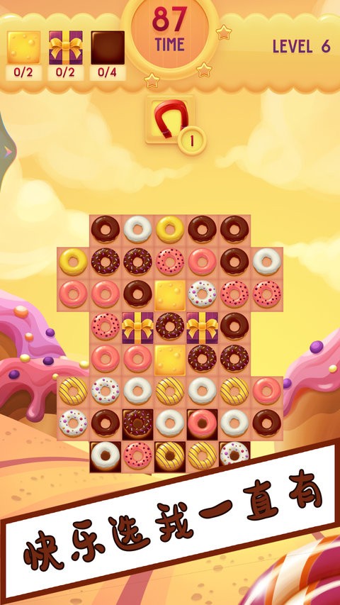 2、游戏的目标是通过连接相同类型的甜甜圈,挑战自己的反应速度和眼力,开启更多难度和挑战,获得高分。