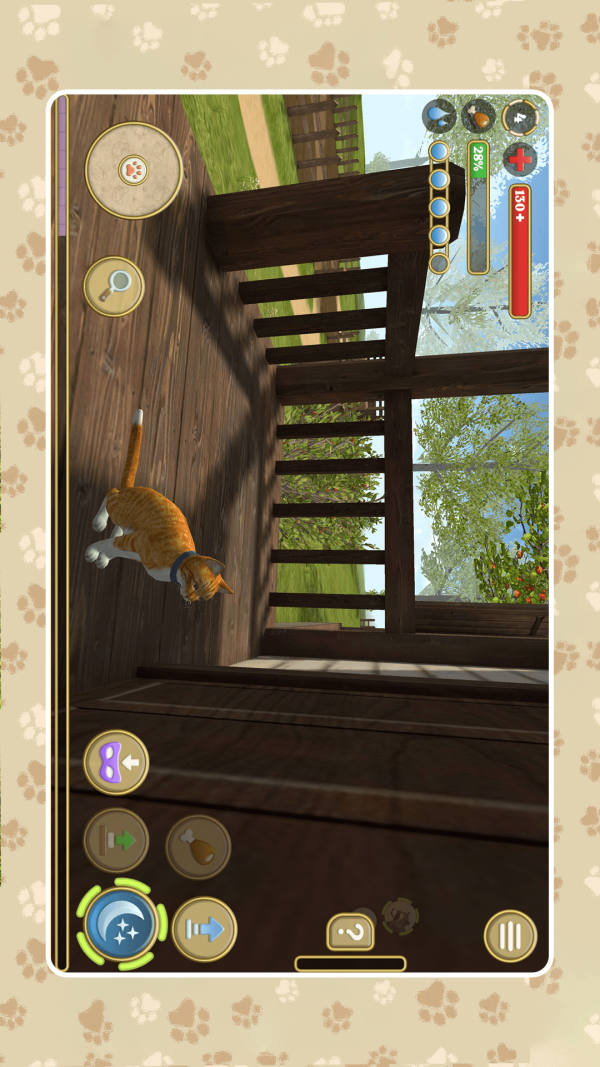 2、你能够控制猫咪自由行动和探索,翻滚、跳跃、挥爪和发出猫叫声;
