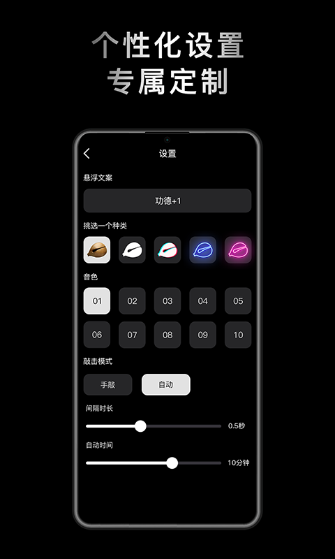 4、【专业音色】更换木鱼音色,10种音色免费使用。