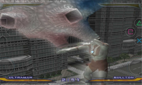 9、左下角控制奥特曼的移动,右边均为奥特曼的出招按键,R2为大招