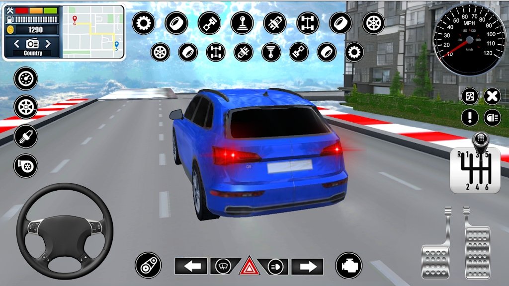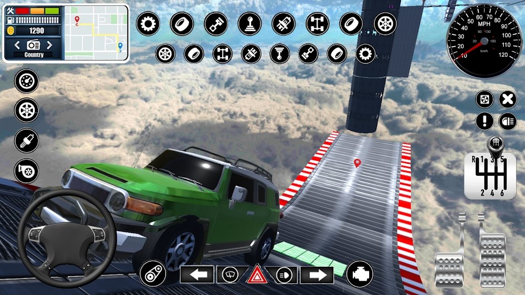 1、游戏提供了流畅的驾驶控制,让你可以在各种城市地形中自由操控越野车;