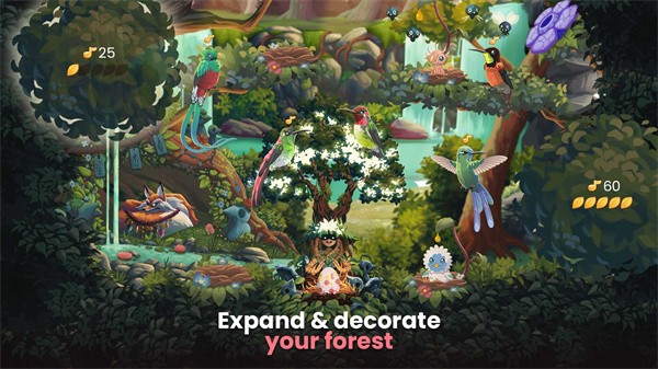 4、用户可以收集、培养不同鸟儿,并通过游戏中的技能升级、道具获取、任务完成等方式,提升鸟儿属性和能力。