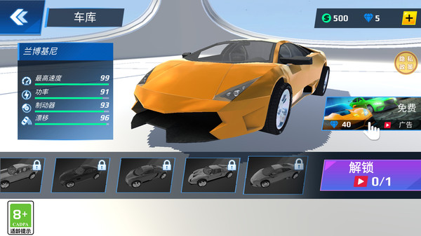 3、这里有不同的赛车,支持使用金币来开启这些赛车;
