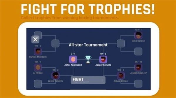 1、在超级拳击锦标赛游戏中,在游戏里玩家可以选择自己喜欢的战士,通过战斗提升整体实力;