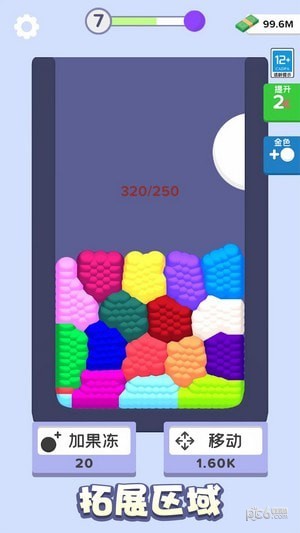 3、在游戏里面,可以收集各种道具,例如分裂器、炸弹等等,帮助更快地合成果冻。
