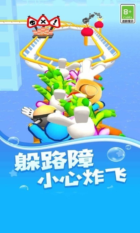 用户在比赛的过程中,还可以体验各色各样的互动冒险,千万小心对手的攻击。