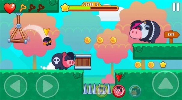 1、控制一只可爱的小动物,开始一段激动人心的关卡之旅,您可以通过左右滑动来移动它。