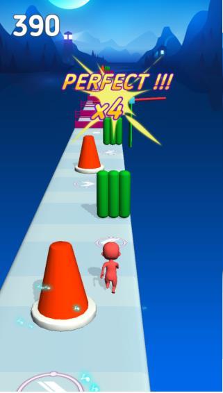 躲避障碍物会根据用户的表现来划分不同的等级PERFECT和GOOD分别会不同程度的额外积分奖励;