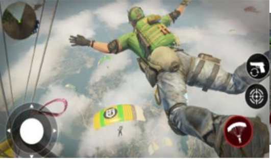 2、用户可以自由控制角色跳伞进入广阔的场景,自由探索场景中的任何地方收集各种武器装备。