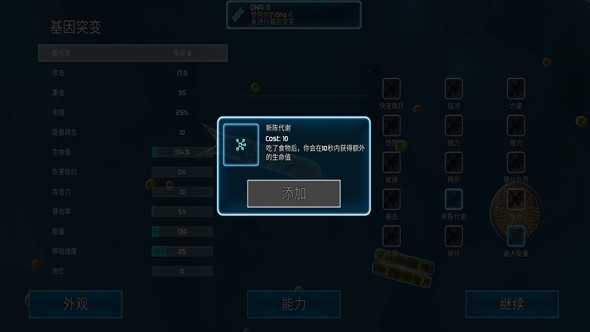 3、当我们成长到一定程度的时候,就可以获取获取DNA点,也就是基因点,这就类似于其他游戏中的技能点,可以自行选择加点方向。