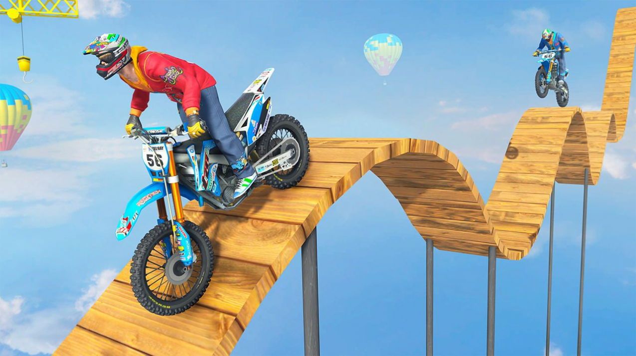 3、刺激摩托车游戏里,在游戏里玩家可以驾驶摩托车比赛,完成不同场景的各种挑战,在惊人的高空驰骋。