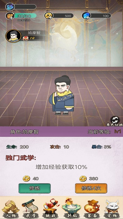 2、注意自己角色的属性,包括生命值和攻击力还有防御力;
