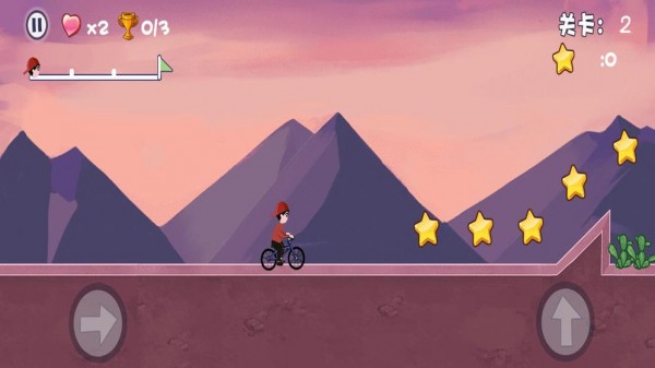 1、简单的骑行路线设计。跟随星星的轨迹学习杂技,收集大量的五角星尽情的享受着游戏刺激。
