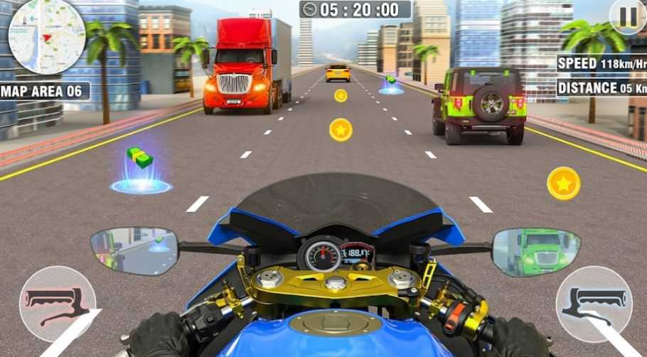 在游戏里面,在游戏里玩家可以通过收集道具和开启新的摩托车来提升自己的能力和游戏体验。
