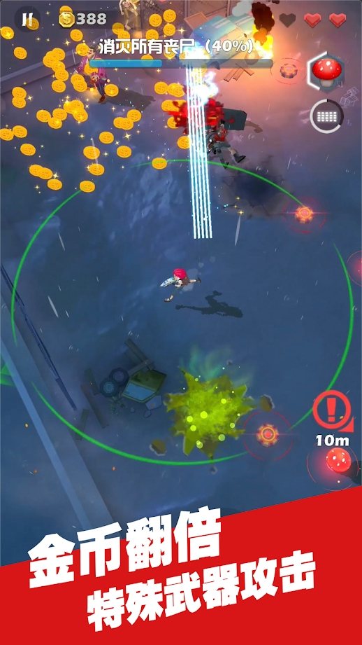 人类的世界迎来了众多的不速之客,你将会操控着你的角色与许许多多的僵尸们展开对抗,看究竟是人类还是僵尸回笑到最后呢?你为了防止人类的世界被僵尸毁灭,需要拿起武器装备参与到战斗中来,与各种幸存者们合作,一同享受战争的热血!