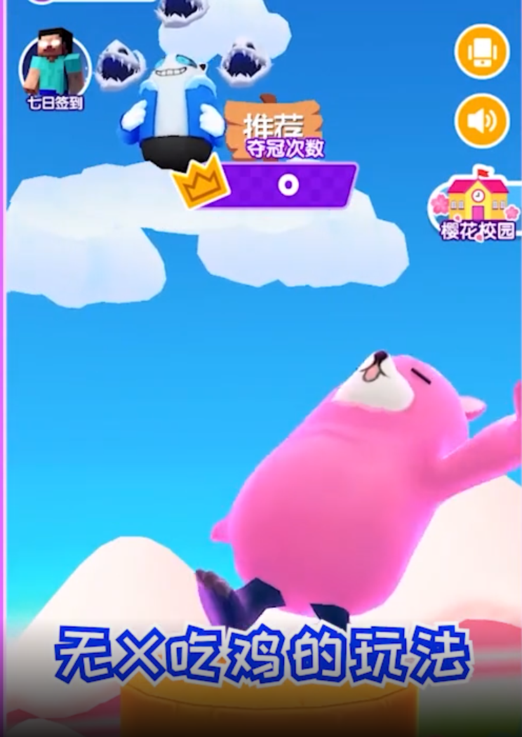 ◆丰富角色的皮肤解锁,扮成砂糖豆在关口玩,很多人在比赛,玩家加入砂糖豆吃鸡肉套餐。