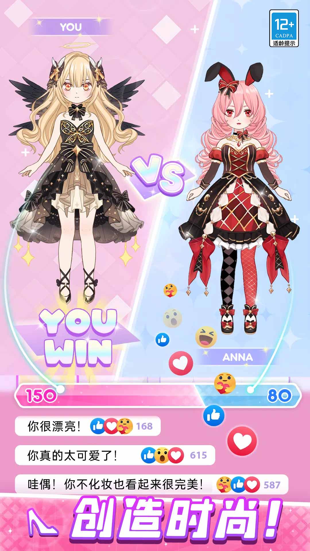 1、老少皆宜换装养成游戏,玩家需要通过换装的方式塑造自己喜欢的角色形象;