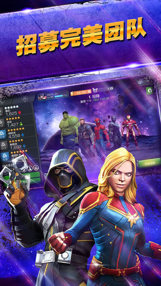 1、打造属于你的终极英雄队伍,用英雄和反派角色来打造一支战无不胜的队伍,击败征服者康和灭霸。