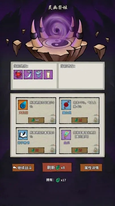 4、然后升级路径,加强不同的特技/宠物/宝藏,杀死奇怪的僵尸或强大的恶灵。
