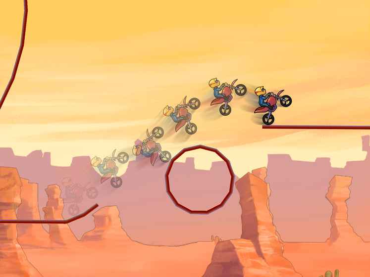 该游戏共有6个不同的世界背景,48个小关卡。每个关卡都已到达终点时间作为评级的依据。而在追求速度的同时,一定要保持住摩托车的平衡才可以,这也正是表演赛的理念。评级的作用可想而知,除第一世界背景外,其他世界均需达到任务要求才可解锁。