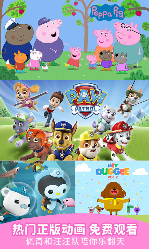 小猪佩奇、超级飞侠、萌鸡小队、海底小纵队、汪汪队立大功、小马宝莉、宇宙护卫队、睡衣小英雄、小恐龙乐园、超级为什么、莎拉与乖乖鸭、百变马丁、比得兔、变形金刚、雨果带你看世界、小企鹅啵乐乐、小公交车太友,精彩动画播不停~