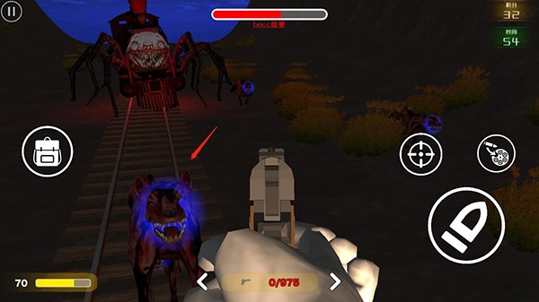 9、旅途中,我们遇到了一只恐怖的蜘蛛火车,它就是查尔斯,来到后部的机枪位置,用子弹打退它吧;